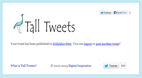 Сегодня в нашей ленте — обзор сервиса talltweets.com от твиттерянина @GlukhovPetr! Это его первый материал для нашего сайта, поэтому просим поддержать автора и отнестись с пониманием :) Впрочем получилось у него очень даже неплохо!